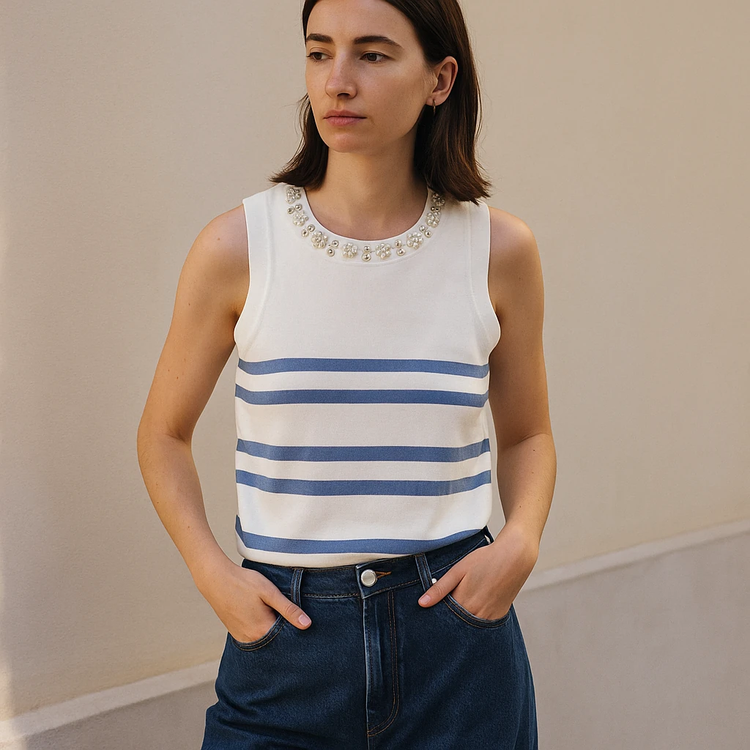 تاپ یقه مرواریدی: ظرافت و درخشش در استایل شما