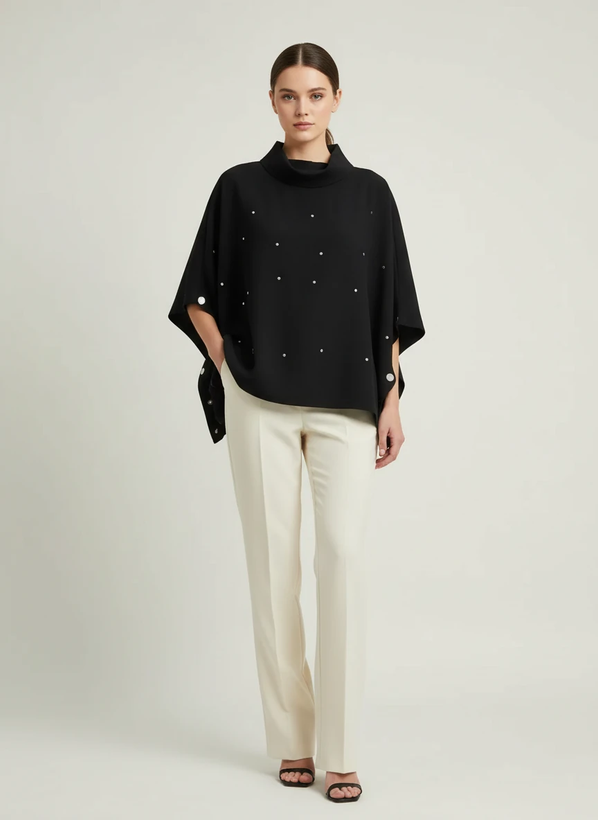 دوختهشده از پارچه کرپ لَخت و باکیفیت با ریزش شیک و تنخور آزاد؛ کاملاً غیربدننما و بسیار راحت روی تن.